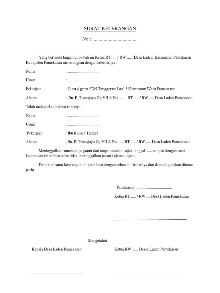 Surat pernyataan sebagai ibu rumah tangga. Contoh surat pengantar kepala desa.